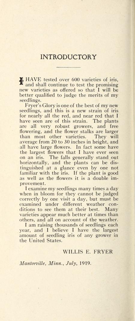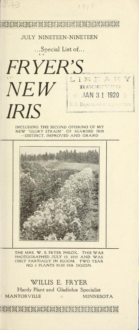 ![]() ‘Fryer’s New Iris’, Willis E. Fryer, 1919 | ![]() ‘Fryer’s New Iris’, Willis E. Fryer, 1919 |